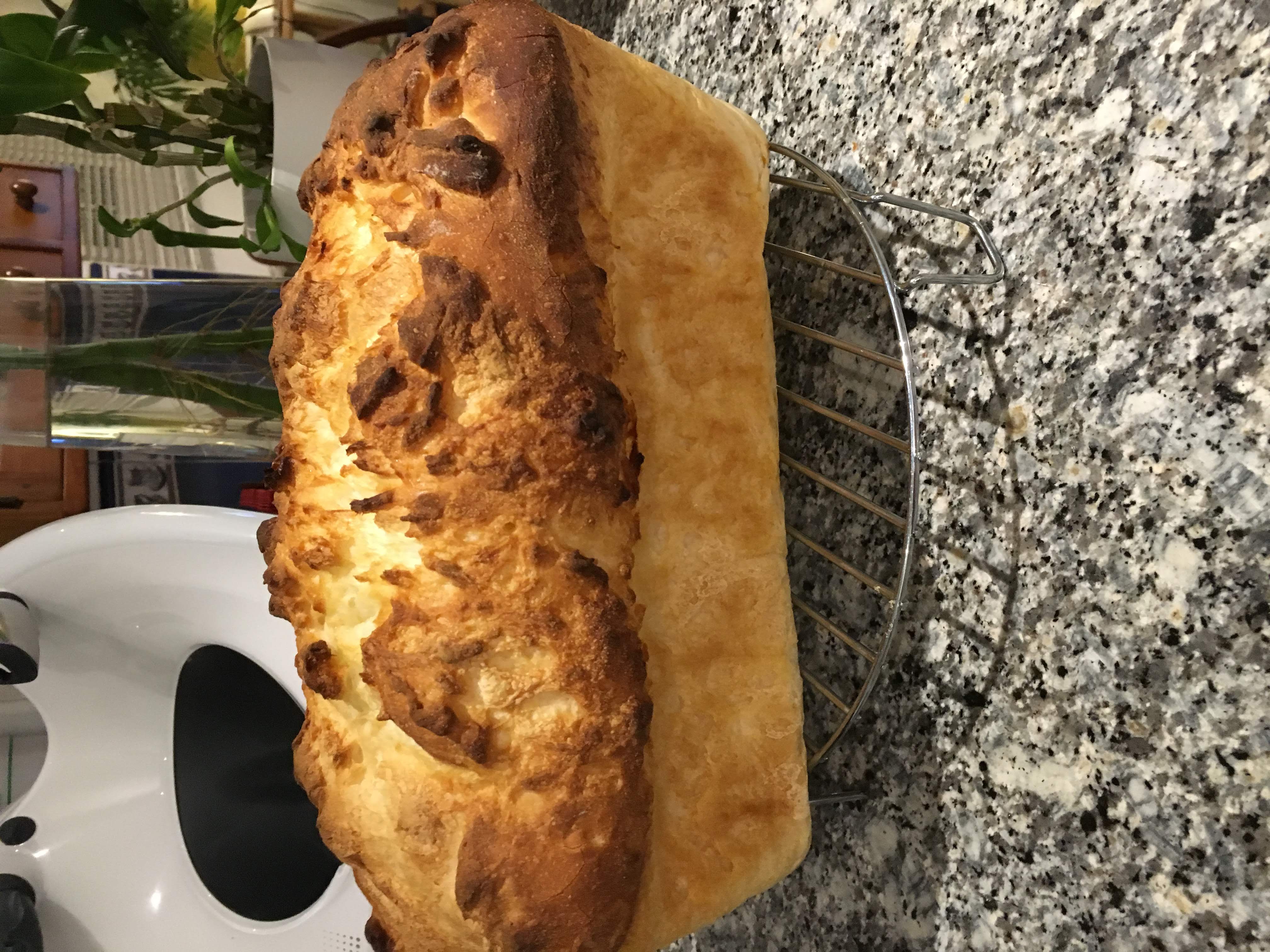 Lo horneo en un molde de aluminio desechable porque favorece su cocción. Lo suelo rebanar y congelar, así uso las rebanadas que necesito para tostarlas.