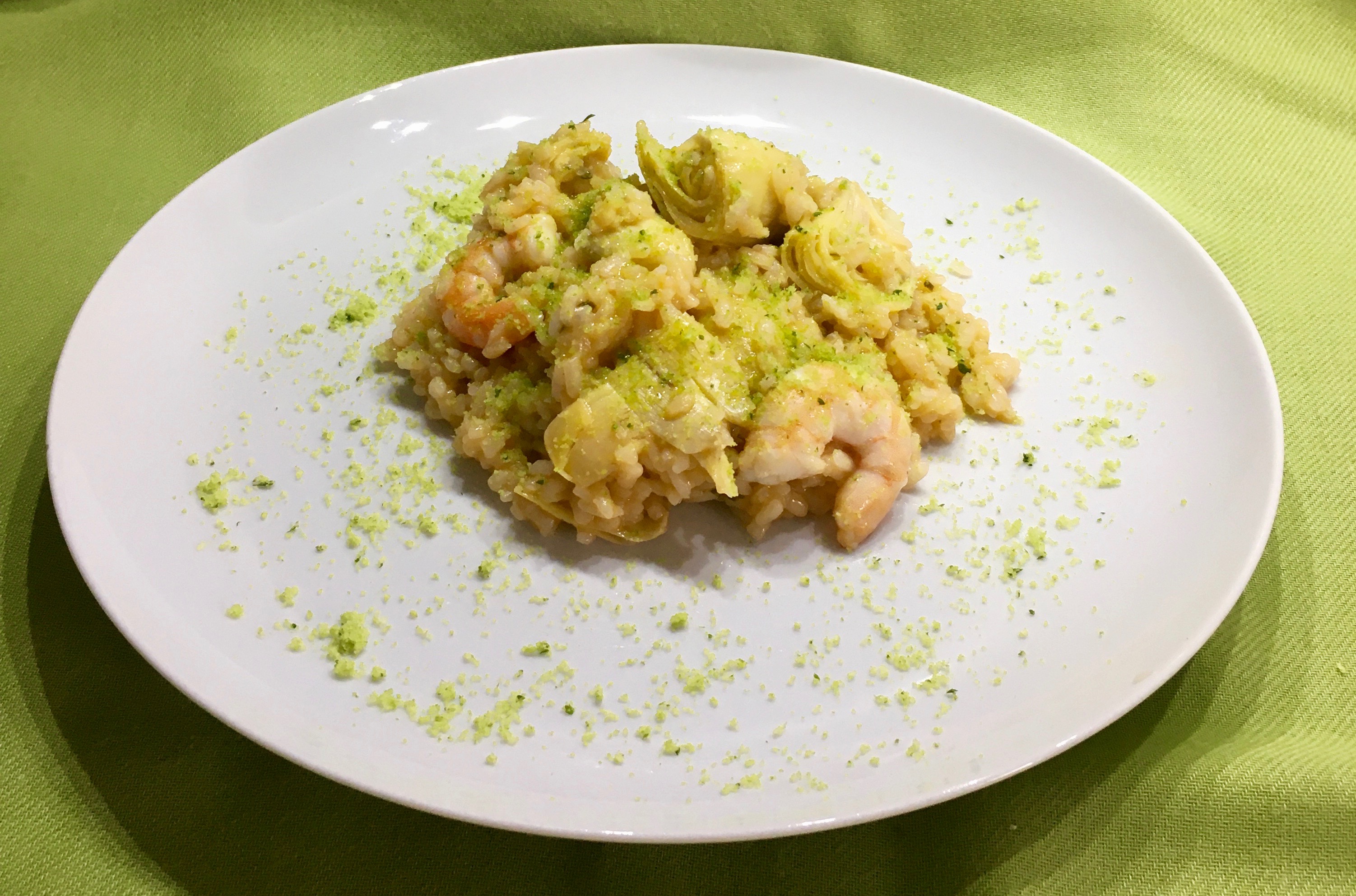 RISOTTO CON ALCACHOFAS Y GAMBAS