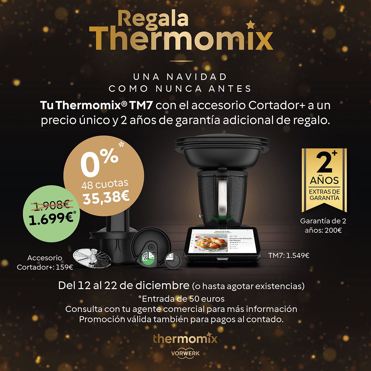 Del 12 al 22 de diciembre (o hasta agotar existencias) tienes una opción increíble donde puedes conseguir tu TM7 + Accesorio cortador + 2 años de garantía adicional de regalo por tan sólo 1.699€