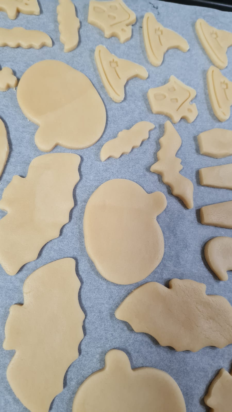 Una vez tengamos la masa bien extendida, recordar que podamos hacer tantas figuras como cortadores tengamos. ¡Recordar que hay un precioso set de Halloween en la tienda online" pero también podéis usar toda vuestra imaginación para hacerlas al gusto.