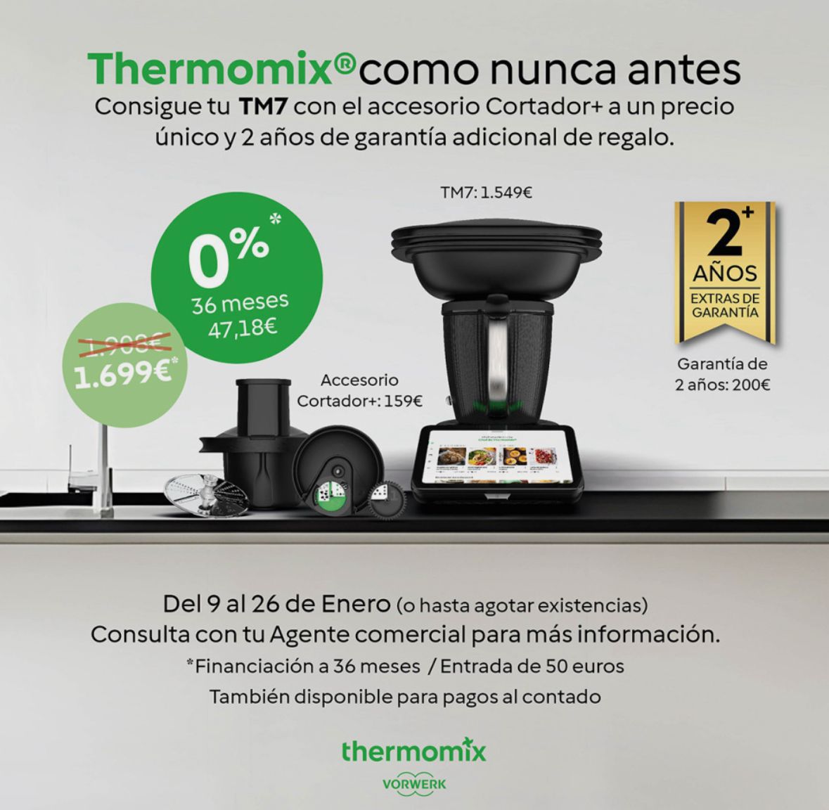 El maravilloso Thermomix TM7 con el cortador plus incluido y además 2 años extra de garantía (5 años total) y por si fuera poco, opción de financiación al 0%