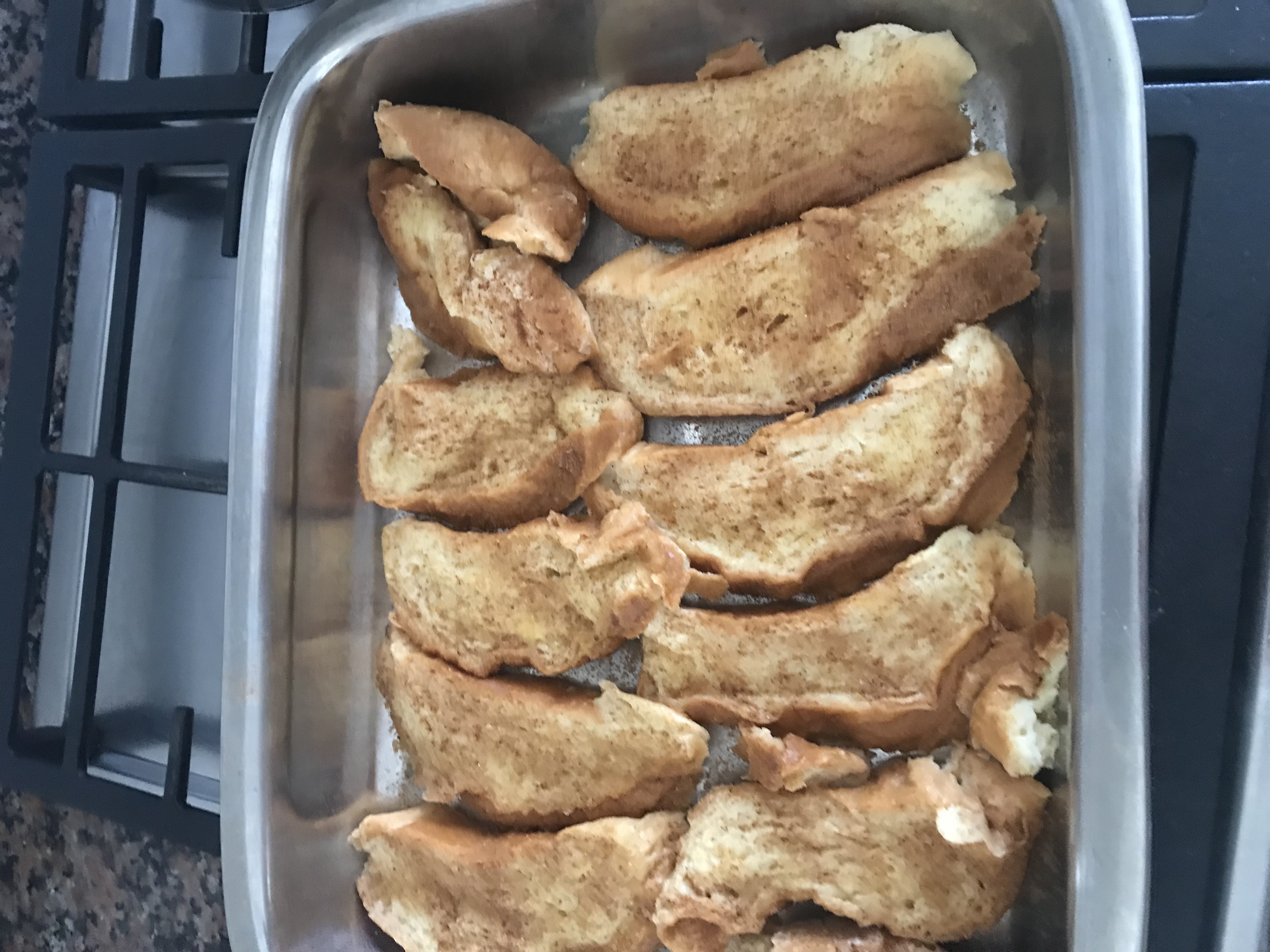 6/ sacarlas torrijas a una bandeja ( opcional se puede poner 3 minutos en el horno para dar el toque dorado )y espolvorear con la canela y servir