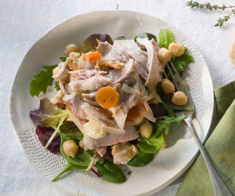 Ensalada de pollo en escabeche con garbanzos con Thermomix desde la Sierra de Madrid