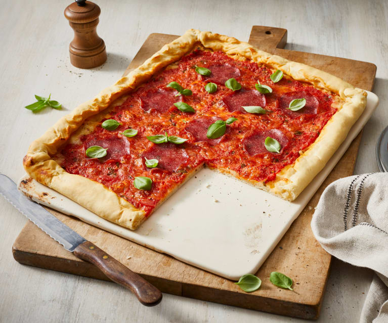 Pizza de salami con borde de queso con Paul con Thermomix desde la Sierra de Madrid